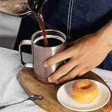 Double wall vacuum insulated coffee mug insulated tumbler mug keeps cold up to 10 hourshot up to 6 hours 100 leakproofamazlife the lightweight insulated cup can keep 12 ounces of coffee or tea and retain their the drink to have no heat transfer or heat transfer mediayour beverage will truly stay as hot or cold as long as possibleCoffee mug also works great for your favorite icy cold beer juice or cocktailGreat quality and modern design make it a musthave accessory of every family