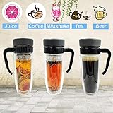 NISVDID - Suitable for multiple occasions with removable handle suitable for your office or home to use When you remove the handle it can be used as a travel tumbler suitable for business trips outdoor hiking or camping One mug multiple uses Notice and satisfaction guarantee the drainer can only be taken out by removing the handle Guarantee glass is a fragile material and may be damaged during transportation If you find that the product is broken when you receive it dont worry contact our customer service support and provide pictures we will replace it for you as soon as possible Modernstyle design made of double wall borosilicate glasshigh transparency sturdy and heat resistant the stainless steel 304 lid with pu leather cover more elegant
